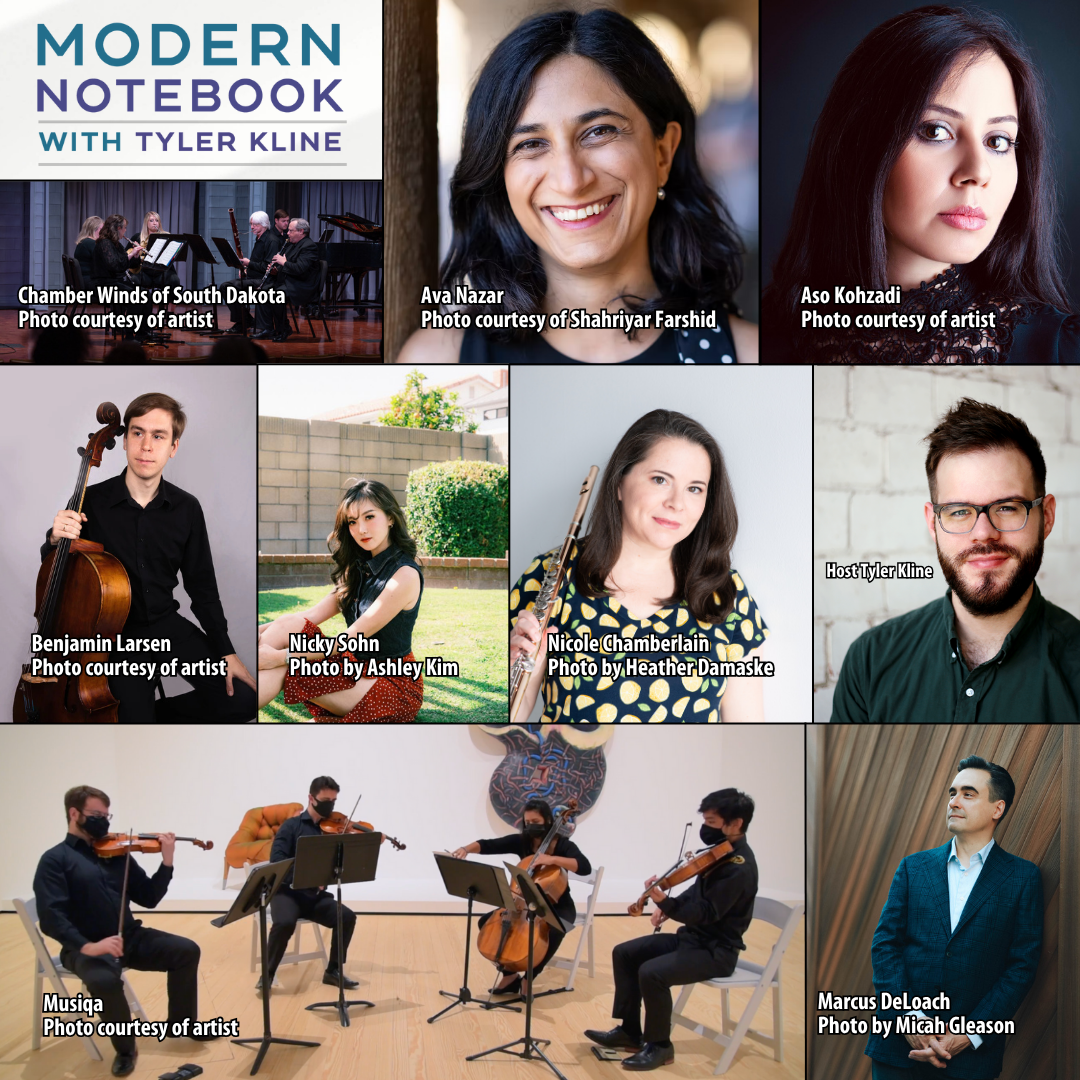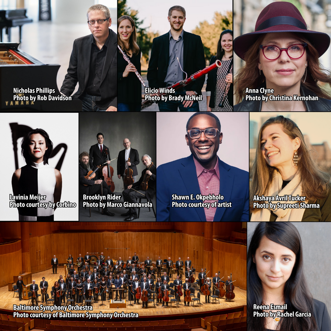 Also featured this week are works by Nicole Chamberlain, Aso Kohzadi, Nicky Sohn, Caimin Gilmore, Reena Esmail, Shawn E. Okpebholo, and Akshaya Avril Tucker. Performances by the Chamber Winds of South Dakota, cellist Benjamin Larsen, pianist Ava Nazar, the ensemble Musiqa, baritone Marcus DeLoach, the Temple University Concert Choir and Chamber Orchestra, cellist Kate Ellis, harpist Lavinia Meijer, pianist Nicholas Phillips, the Baltimore Symphony Orchestra, Elicio Winds, and the quartet Brooklyn Rider.