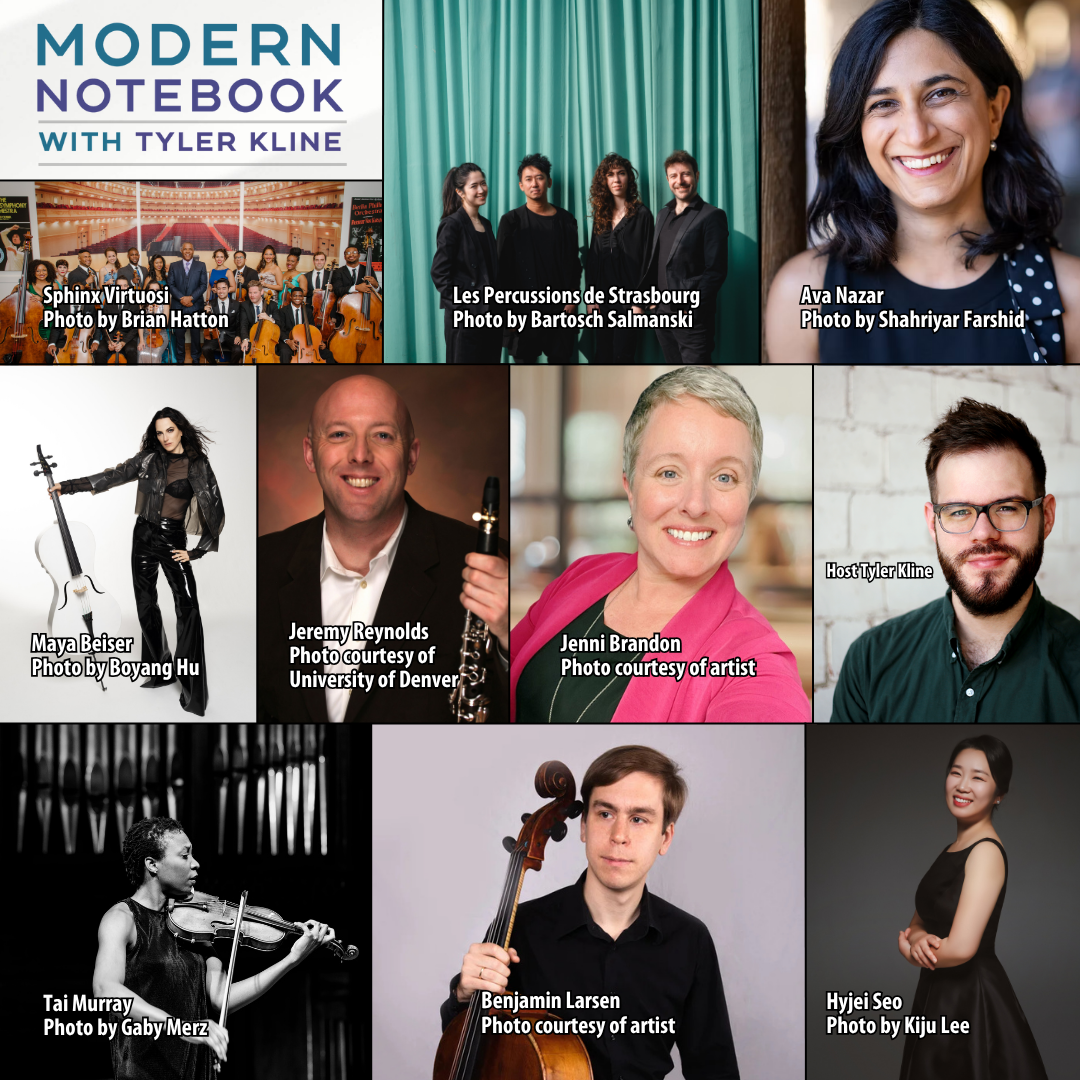 Also in this episode: music by Meredith Monk performed by cellist Maya Beiser, Jenni Brandon performed by clarinetist Jeremy Reynolds, Nasim Khorassani performed by violinist Nami Nazar, cellist Benjamin Larsen, and pianist Ava Nazar, Curtis Stewart performed by violinists Tai Murray and Njioma Grevious with the Sphinx Virtuosi, Un Hoe Park performed by pianist Hyeji Seo, Alexandra Gardner performed by Grand Valley State University New Music Ensemble, Trevor Weston performed by ECCE Ensemble, Michaela Catranis performed by Riot Ensemble, Haflidi Hallgrímsson performed by cellist Sigurgeir Agnarsson, and Yunfei Li performed by Duo Entre-Nous.